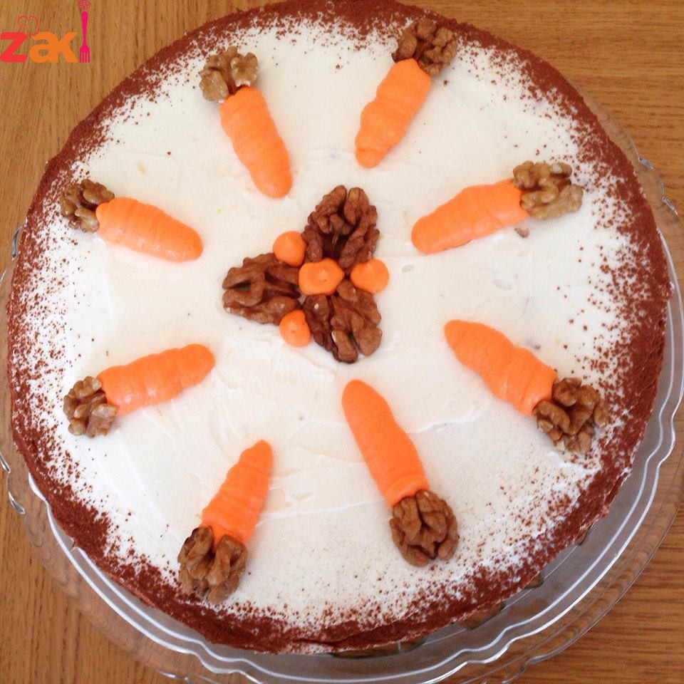 متل خفق الكيك العادي نخفق البيض والسكر والفانيليا جيدا نضيف الزيت ثم النواشف ومانبالغ وقت النواشف بالخفق حتى مايقسى الكيك نضيف الجزر والجوز مع النواشف