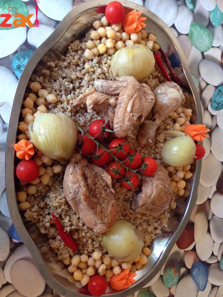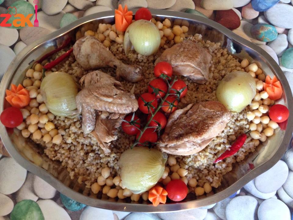 برغل اشقر وسط او ناعم حسب الرغبه يغسل وينقع بالماء كأس به ماء مع القليل من زيت الزيتون طحين ابيض مخلوط به القليل من لطحين الاسمر بهارات المفتول القرفه ، فلفل اسود ، كراوية ، سبع بهارات ، هيل ، كمون ، جوز الطيب