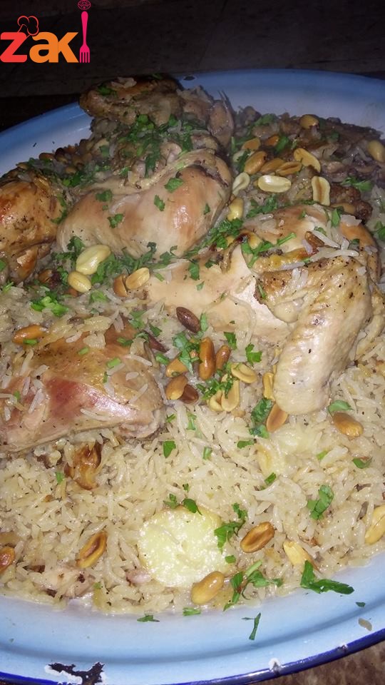 بنضف الجاج منيح وبحطه في صينيه تحمير بتبله بملح وفلفل وبهار هيل وادهنه زيت قلي واحمره لغايه الاستواء بقلي الزهره وبكون ناقعه الرز عجنب بتبل الرز بعد غسله بملح وفلفل وبهار هيل رشه قرفه مطحونه وزنجبيل مطحون احيانا وماجي وبخلطه الرز منيح بعد ما يستوي الدجاج بصفطه في الطنجره وبعده الزهره المقليه والرز بكون غاليه مي عجنب وهي تغلي بضيفها فوق الارز وكالعاده الول شي نار حاميه بعدين على نار واطيه لتتشرب ميته وصحه وهنا ^_^