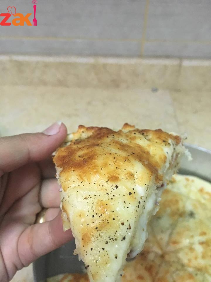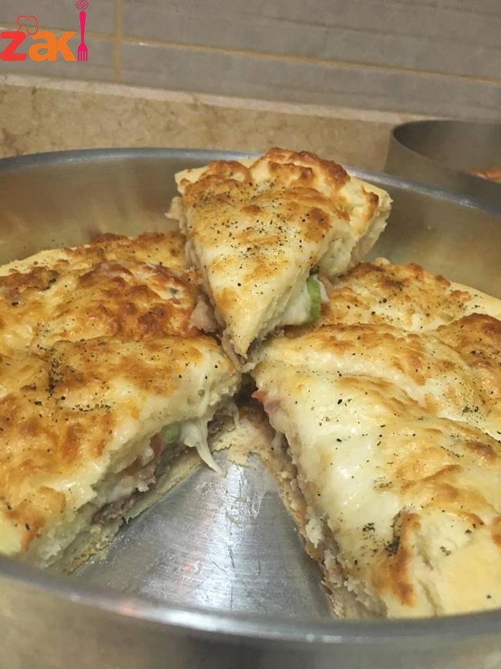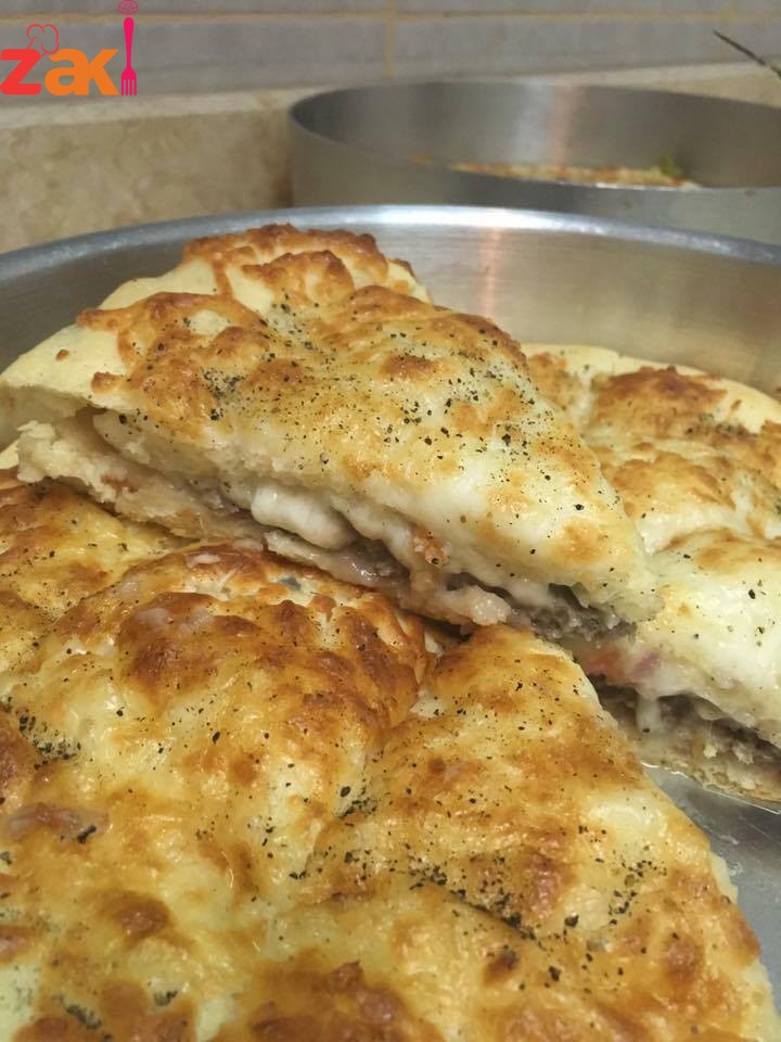 ونفرد جزء العجينه الاخر من فوق ونقفل العجينه وفوق الوش جبنه موتزاريلا