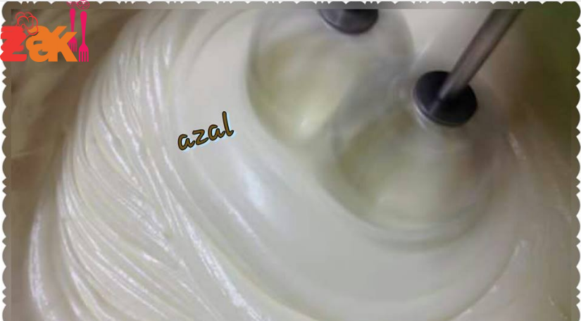بعد ذلك نضيف فانيلا،في اناء آخر نخفق كوب حليب سائل مع كيس كريم شانتي وعندما يثخن نضيف اليه خلطة الزبدة على مهل يخلط جيدا ويستعمل.