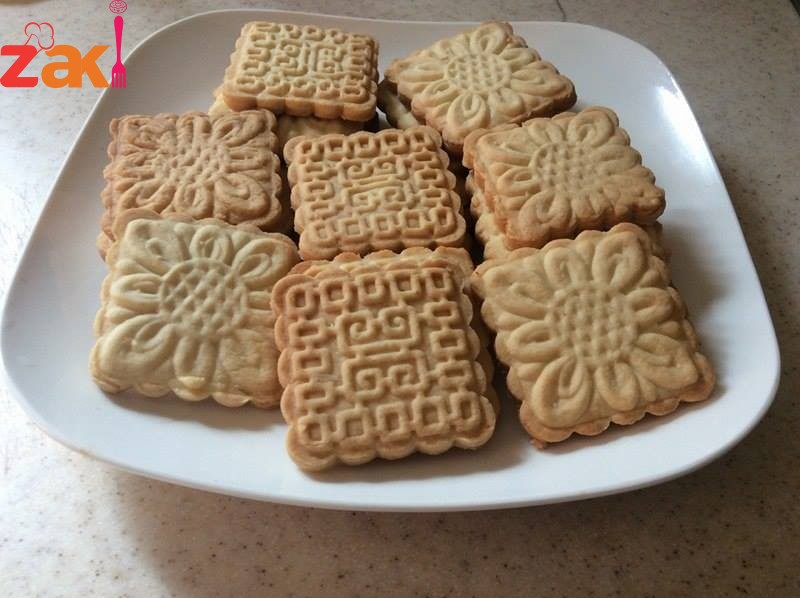 ثم نضيف النشا والدقيق وخميرة الحلويات نفرد مع رشة الدقيق وتشكل بالقطاعة, ثم تخبز و صحة و هناء ^_^
