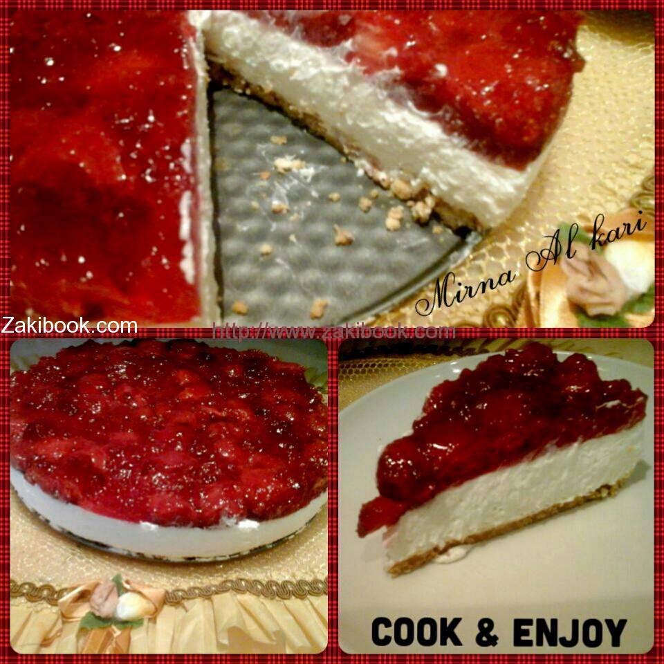 – بهذا الوقت بتكون طبقة البسكويت التي وضعناها بالبراد نحضرها ومن ثم نصب المزيج الكريميفوق خليط البسكويت, بترجعو عالفريزر لتجمد منيح.