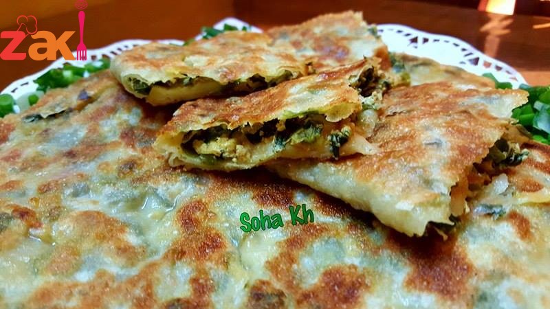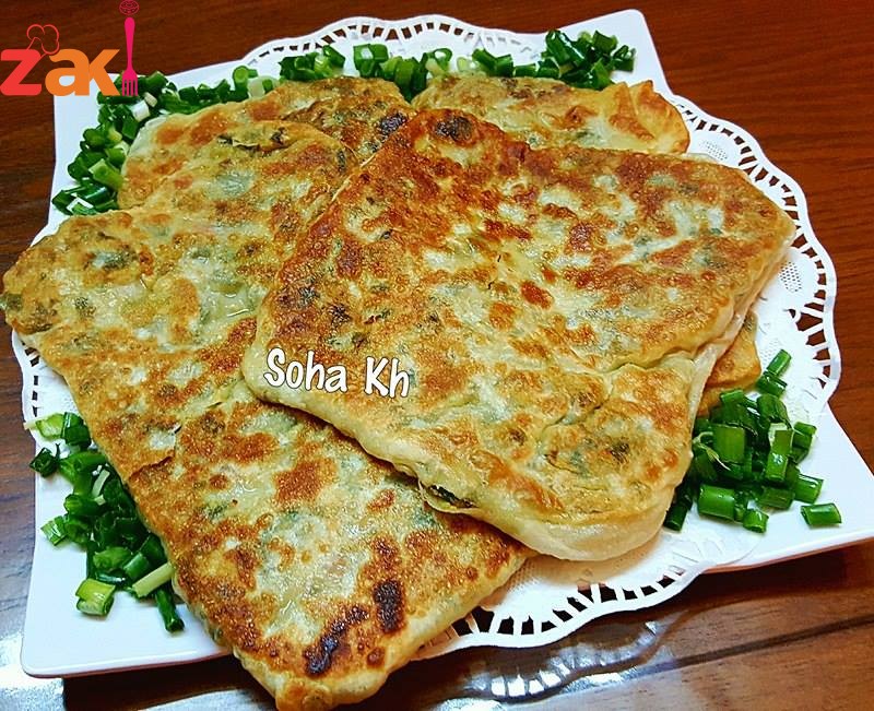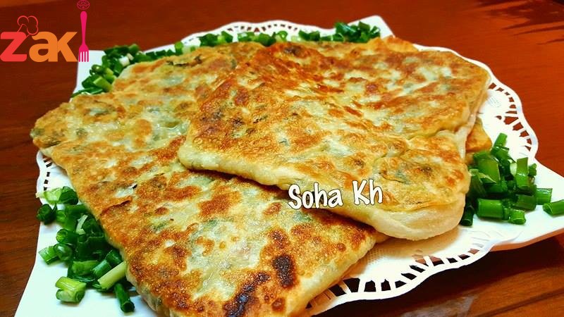 يفرم ورق البصل الاخضر ويغسل ويصفى من الماء ويوضع بمقلى فيها زيت زتون ويقلى جيداةحتى تجف الماء تمام ثم يوضع بيض فوقه وملح ورشه كمون وفلفل اشود وفلفل حار حسب الرغبه