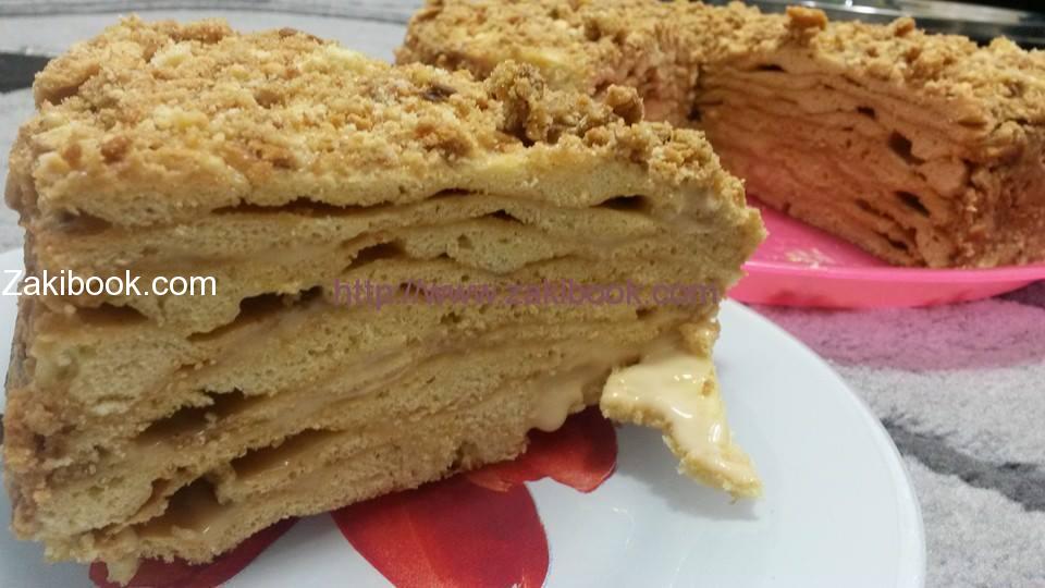 – اخر شي بتجيبي الطبقات وبتحطي بين كل طبقة وطبقة الصوص اﻻبيض وبتزبطي شكل الكيكة بالسكينة شيلي الزوائد انا بخبز طبقة زيادة وبحطها بالخﻻط مع جوز او اي نوع مكسرات وبغلف الكيكة فيهم وبتنحط بالبراد تاني يوم بتتاكل وصحة.