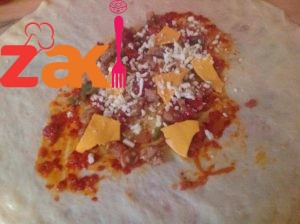 ونضع فيها الحشو مع جبن وانطبقها وانحطها في الماكنة والحشو دجاج مقطع مكعبات صغيرة يتشوح في اشوية زيت يتبل بصل فلفل اسود ملح زنجبيل وانحط عليه طماطم مكعبات وفلفل رومي او حار