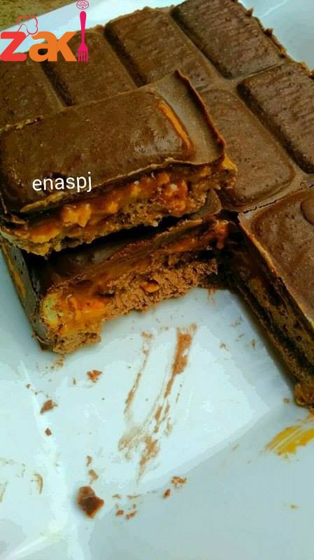 الطريقة. خودي قالب مستطيل ورتبي فيه حبات البسكوت وصبي الطبقة الأولى وساوي بالسباتيولا بعدين حطي الطبقة الثانية ورتبي فوقها كمية أخرى من البسكوت وسيحي ااشكلاتة الخام السوداء وصبيها عليها من فوق وخليها لتتماسك .