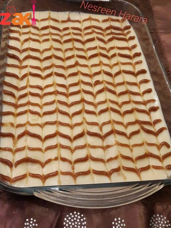 ثم نضع الخليط بطنجرة عالغاز مع التحريك المستمر ليتقل الخليط نطفي الغاز ونضيف معلقة كبيرة زبدة وعلبة قشطة صغيرة ثم نضع طبقة من الخليط فوق طبقة البسكوت وبعدين نعمل كمان طبقة بسكوت وفوقها باقي الخليط وتزين حسب الرغبة وتوضع بالتلاجة لتبرد ساعتين او اكتر انا زينت بصوص نس كافيه تقدري تزيني بتوفي او شوكولا مسيحة او نوتيلا والف صحة .
