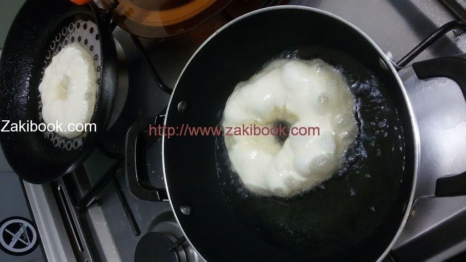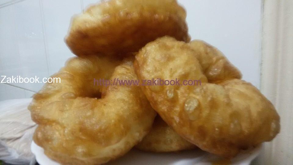 – نقرصها كل حبة بحجم كرة بعدين نحضر  مقلتين الاولى فيها 5 ملاعق زيت والثانية زيت غزير نعمل ثقب فالعجينة نحطها بالمقلاية  الاولى نار اقل من الوسط بعد ما تنتفخ نحطها بنفس الوضعية الي عليها في المقلاة الثانية راح تنتفخ اكثر معك نقلبها من الجهة الثانية ونقطرها وصحتين.