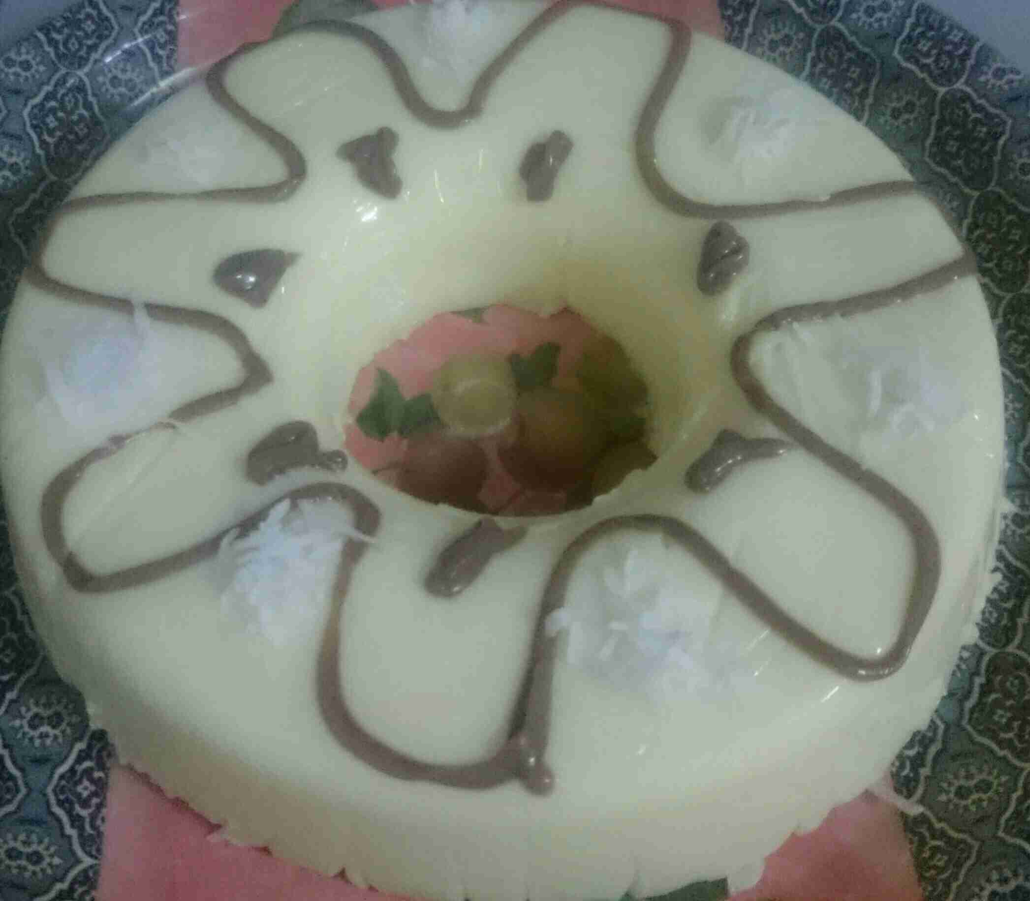 في طنجرة منحط المكونات التالية 4 كاسات حليب.. كاسة ونص جوز الهند.. نص كاسة نشا.. كاسة سكر ..ضرف.. فانيلا ..ثلاث ملاعق كاسترد او ضرف كريم كراميل نحركها جيدا ونضعها عالنار مع التحريك المستمر حتى تغلي المكونان ونضعها في قالب سيلكون او اي قالب مبطن بالنايلون نتركها تبرد ثم الى الثلاجة الى اليوم الثاني وصحتين وعافية