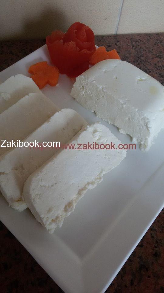 نضع 2 لتر حليب بقر طازج في طنجرة فوق النار حتى يغلي ، ثم نضيف له 6 ملاعق خل أبيض ، ونتركه قليلا يغلي ويصبح جبن، ثم نرفعه عن النار ، ويصفى في مصفاة فوقها شاش قماش نظيف جيدا ، حتى يصفى جيدا من الماء ، ثم نعصره قليلا ونضيف له الملح ونخلط ، ثم نضعه في برطمان زجاجي ونصب وقه زيت الزيتون ، ويصبح جاهز للأكل وصحة وعافية .