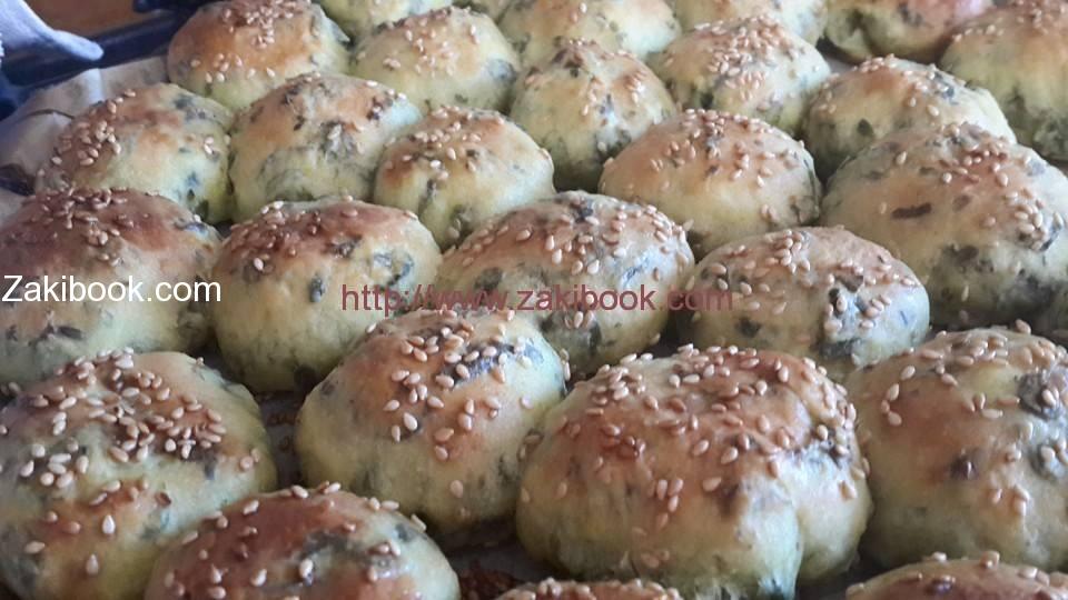 بعدها يقطع كرات صغيرة ، وتحشى كل كرة بقطعة جبنة بيضاء مع رشة حبة البركة ويلف ويكور ويبسط قليلا براحة اليد ويرص في صينية الفرن ، ويترك يختمر ، وقبل إدخاله للفرن ندهن وجهه بخليط (بيضة مخفوقة مع ملعقة حليب سائل ) ويرش بالسمسم .
