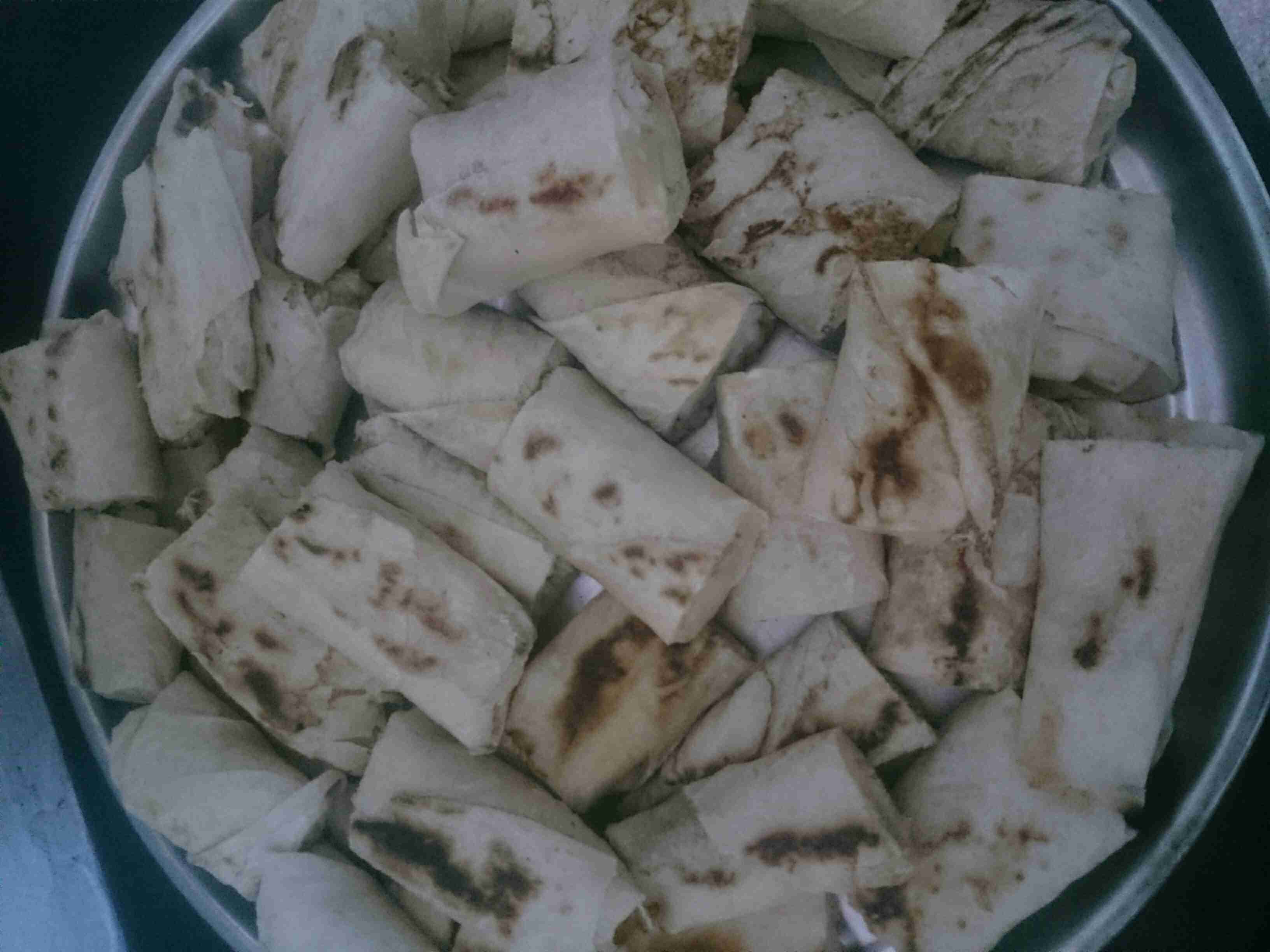 بلف الشورما بخبز لشراك وبحط معن مخلل وبطاطا مقلية وبلفن اذا مو موجود مكبس الخبز بحط نقطة زيت بمقلاية وبحمر السندويشة من الجنبين مع الكبس عليها بالمعلقة لتتحمر تمام وصحتين والف عافية