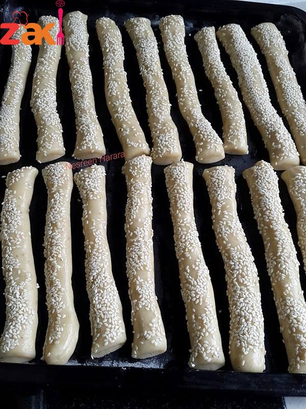 نضع كاس حليب سائل وكاس سكر وكاس زيت ومعلقة كبيرة زبدة او سمنة مذوبة ومعلقتين كبار يانسون مطحون ومعلقة صغيرة بيكنج بودر ومعلقتين كبار سميد ناعم نخلطهم كويس ونعجنهم مع اربع كاسات ونص طحين ونشكلهم بشكل طولي ويكون رفيع لانه حينفش بعد الخبز  ونقطعهم قطع متساوية وندهن الوجه حليب او قطروندحرج الوجه بالسمسم ونضعهم بصينية مدهونة  ونخبزهم على حرارة 180 ونتركه ليبرد تماما وبعدين نغطيه والف هنا ^_^