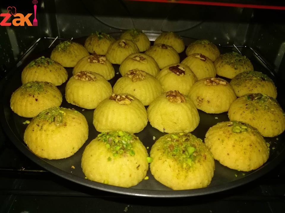 تخلظ مع بعض وتترك لثاني يوم ونحضر معلقه كبيره خميرة ورشه سكر مع ماء فاتر ونعجنهم مع الخليط ونتركها ترتاح ساعتين ونرش عليها مستكه ومحلب مطحون ونشتغل بها ونحشيها جوز وفستق حلبي ونشويها بالفرن وصحتين .