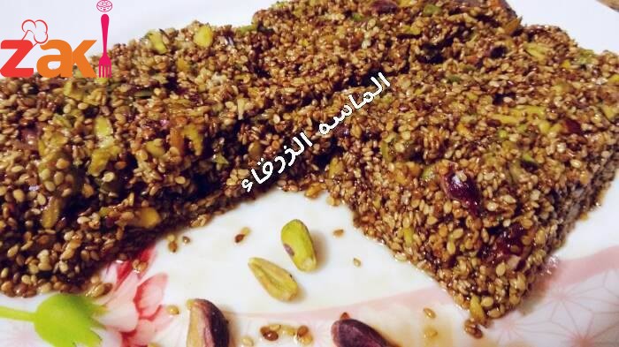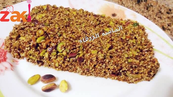 كوب ونص سمسم ونص كوب فستق حلبي مجروش
