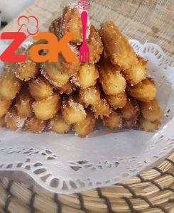 بعدين منعبيهن بكيس الكريما ومنستخدم الراس على شكل نجمه اذا ماتوفر كيس الكريما عبوهن بكيس نايلو شفاف وافتحو طرفو وصيرو نزلو على الزيت وبس نزل على الزيت منقطع الطرف بسكينه لينزل على شكل اصبع اول شي الزيت لازم يكون حامي ولما نبلش بلقلي منخففو للوسط وبس اشقرو منطلعن على ورق نطبخ وبعدين منفمسن بخليط السكر والقرفه وانا قدمت جنبن صوص توفي
