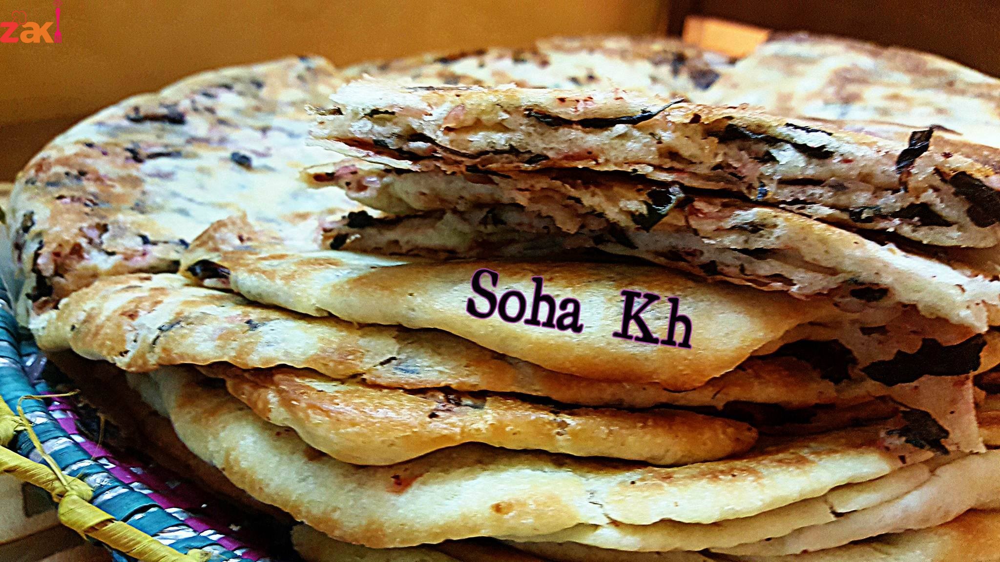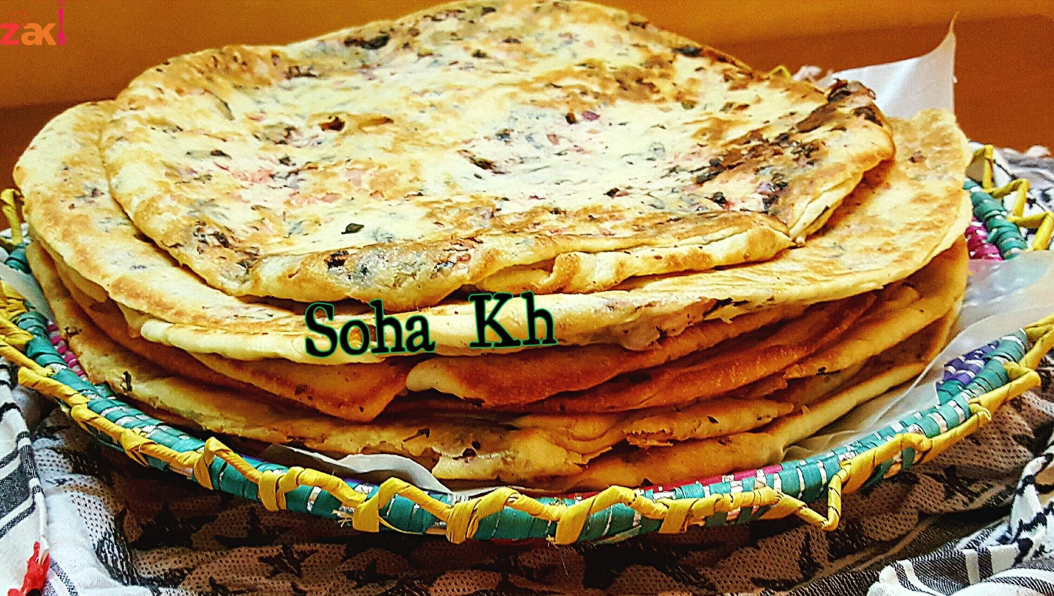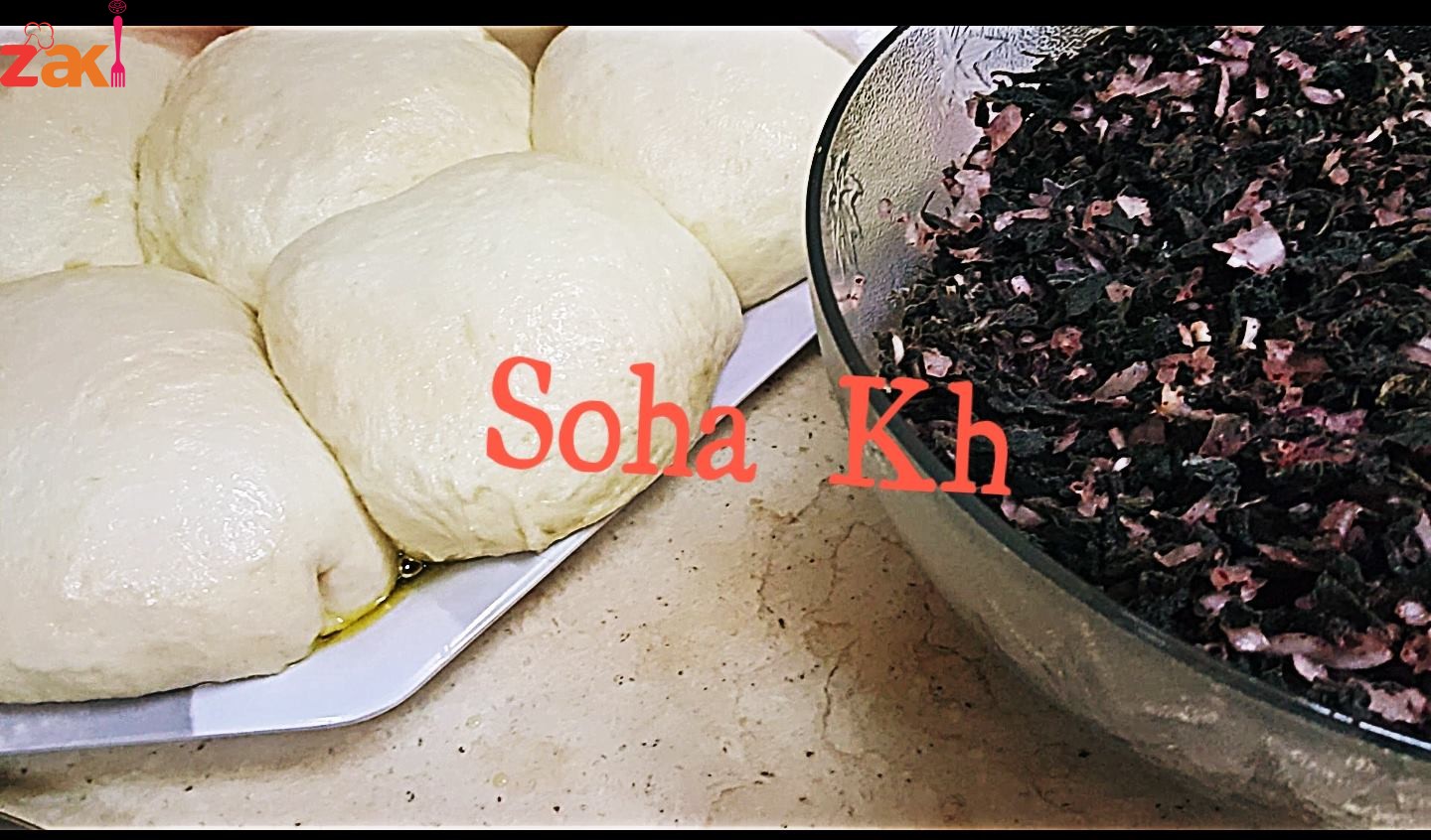 فطير او مطبق فلسطيني بورق الزعتر الطازج وزيت زيتون