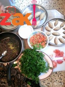 2. ع لغاز بتشوحي نص كيلو لحمه مفرومه مع برش بصله وبس يقرب ع الاستواء بتحطي لبهارات(ملح فلفل اسود قرفه بهار مشكل كاري كلو لبهارات حسب الرغبه )بعد لبهارات بضيفي حبة فليفله خضرا مقطعه مربعات ونص قرن فلفل أخضر وسن ثومه ع للمكبس مهروس وبتقلبيهن منيح وبعد ما ينضجن ويصرن تمام بضيفي لبهارات الي بتحبوهن هيك بتصير لحشوه جاهزه ولعجينه جاهزه
