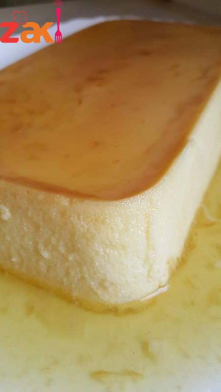 ويعدها بنحطه فوق السكر المكرمل بنحط القالب جوات صينيه اكبر فيها مي سخنه (حمام مائي) الفرن حرارته 180 مشغل قبل بوقت اول شي بنترك الكراميل ربع ساعه بعدها بنخفف النار للوسط مده 40د ممكن اقل حتى يجمد بالتلاجه اقل شي اربع ساعات وبس نقلبه بحمام مائي مده دقيقه وبالهنا