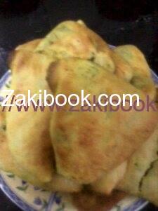 – نقطع العجينة إلى كرات صغيرة ونفرد كل كرة إلى دائرة ونحشيها باللحمة ثم نغلقعها على هيئة مثلث.