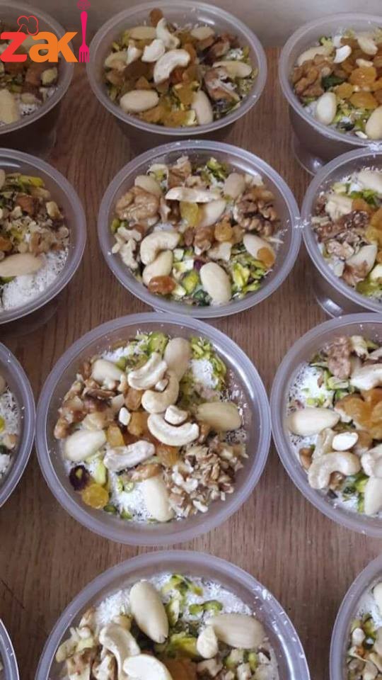 نضعهن على النار ونحرك لحتى تشبك وبس تبرد بصبهن بزبادي وبزين بمكسرات حسب الرغبة وصحة وهنا