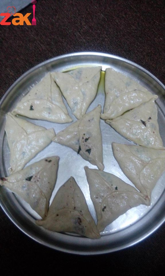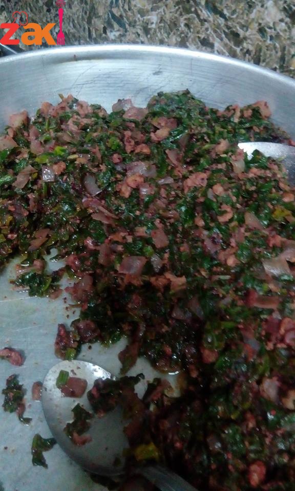 بصل مقلي بزيت زيتون واضافة اللحمة المفرومة ثم اضافة السبانخ المغسول والمقطع والمعصور ونتركه على النار مدة 5 دقائق واخر خطوة اضافة السماق البلدي كمية كبيره ومن ثم البدء بحشو العجين وتحميرها