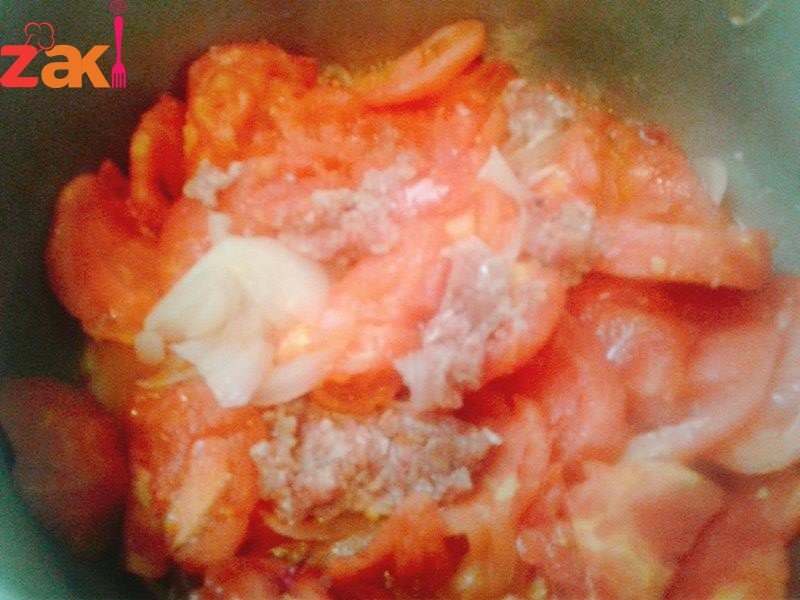 . بصل حبتين كبار مقشرين ومقسمين جوانح.مقليين بزيت نباتي