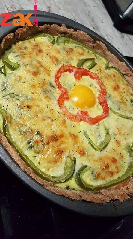 وبنضغط عليها بالايد زي الصورة مع رفع الحواف الحشوة السبانخ اذا فرش بنفرمه شوي وبنضيف الزيت والجبنه والملح والفلفل ومنخلطهم شوي وبنحطهم لدقيقتين بالمايكروويف وبعدين منضيف البيض وبودرة الثوم ومنخلط منيح وبنحط الخليط فوق العجين وبنزينها بالفلفل الملون مع رشة بهارات ايطاليه ع الوجه مثل الصورة. اكيد الفرن بكون محما مسبقاً لدرجة 350fْ بنخبزها لة20-25د وصحه وعافيه……