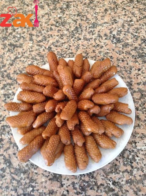 يخلط الطحين مع البهارات واليانسون والشومر ثم يسكب عليها الزيت الحامي ويقلب بالمعلقة وقشر البرتقال يسن مثل المعمول ويعجن ويلف على المبشرة ثم يقلي بالزيت الحامي لحين الاحمرار ويغمس بالقطر