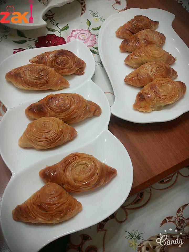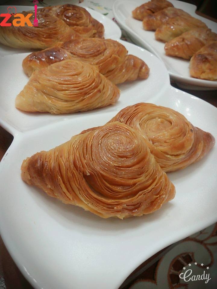 وبدهن بين كل طبقه وطبقه سمنه وبعدين بقطعها قبل الشوي بشويها في الفرن من تحت بعدين بحمرها هيك بتكون جاهزه بطلعها من الفرن وبحط عليها القطر