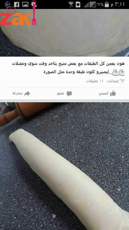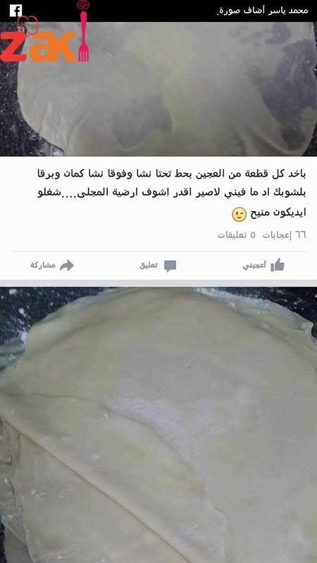 وضع المكونات الجافة مع بعض وتفتير على الغار المكونات سائلة ثم عجنها حتى تتكون عجينه لينة وطريه وتركها ترتاح 3ساعات بعد ما ترتاح تقسيم العجينة نصفين وتقطيها لكور صغيره حسب ما بطلع معك في العجينة ثم رق كل قطعه مع اضافه نشأ حتى ما تلزق بتكرري في العجين نفس الاشي حتى تصير معك رقيقة