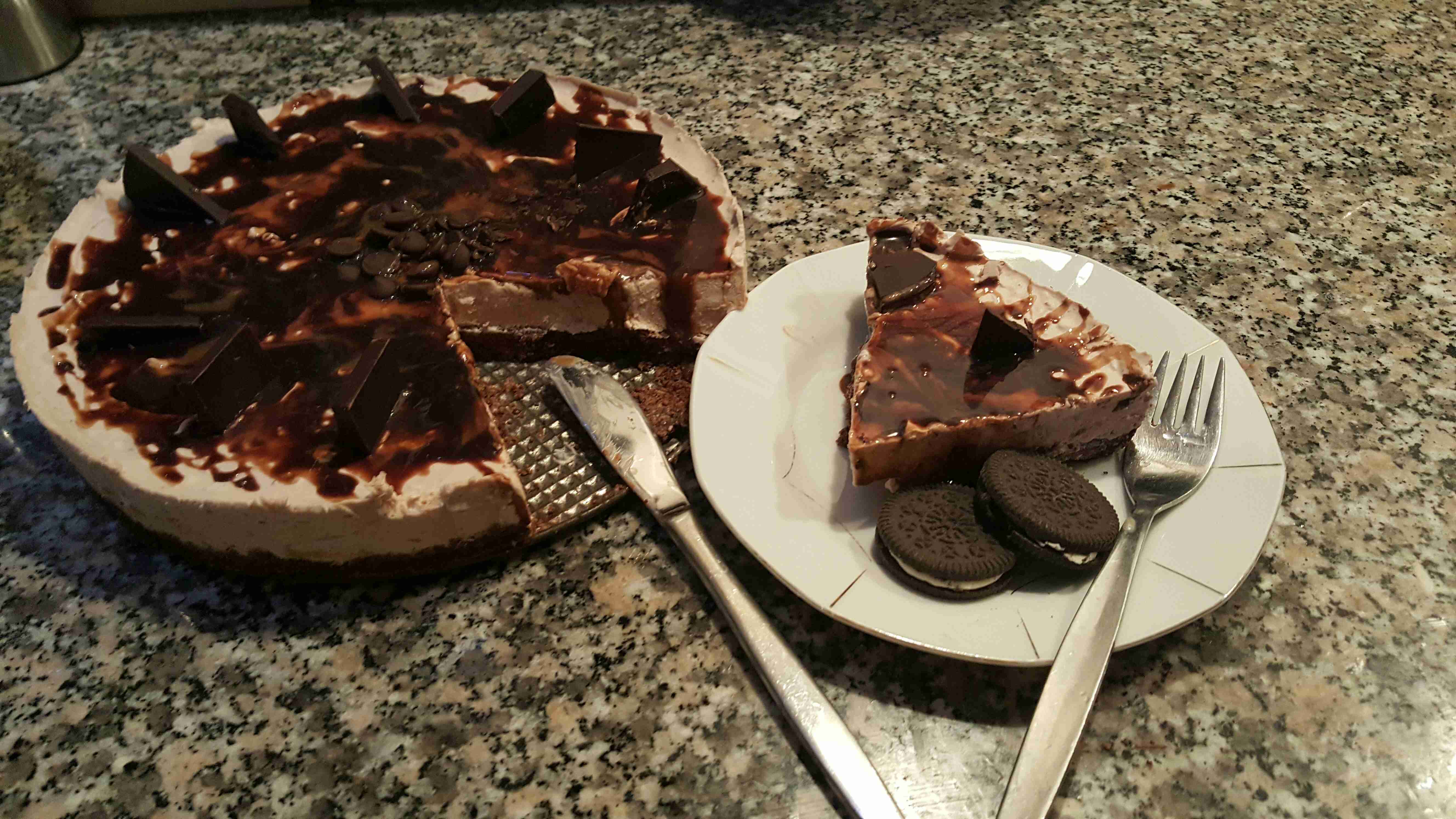 اول شي منطحن البسكوت ناعم ومنضيف عليه الزبده والكاكاو ومنخلط منيح وبعدا على قالب التشيز كيك ومنرصو منيح وعلى الفريزر عشر دقايق