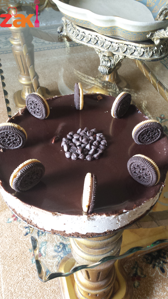صوص الشوكولا اختياري في يكون علبه قشطه مع شوكولا مدوب أو غناش أنا استعملت غناش عبارة عن علبه كريما سائله أصغر قياس استخدمت عنار خفيفه منسخن كريما بس تغلي منسقط لوح شوكولا 200 غ بس تدوب كل الشوكولا ومننتظر حتى تبرد شوي ومنزين فيها وجه تشيز cake oreo