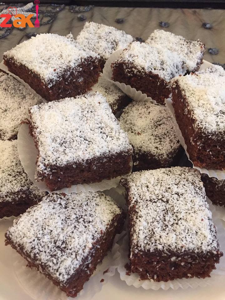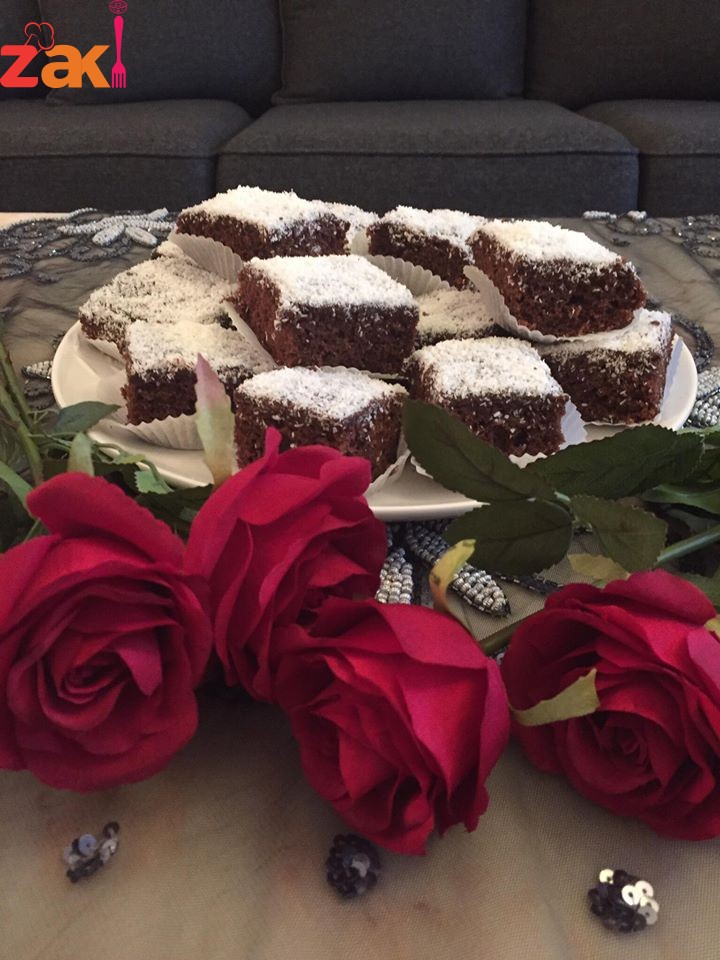نبداء بإضافة النواشف الطحين والكاكاو والباكينج بودر بعد نخلهم تدريجي بالتناوب مع الحليب نضع الخليط في صينيه مستطيلة 20•30 او مربعه مقاس24•24 تخبز بفرن حامي 180 يفضل ان تكون الصينيه مبطنة بورق الزبدة