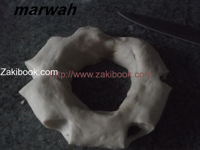– طريقة المعروك او كعكة التمر هي نفسها عجينة العشر دقايق بمدها مستطيل و اعمل معجون التمر اسطوانة و الف العجينة عليها و بعدين بقطعها شوي بدون ما اخليها تنفصل بعدين بوصل الطرفين ببعض