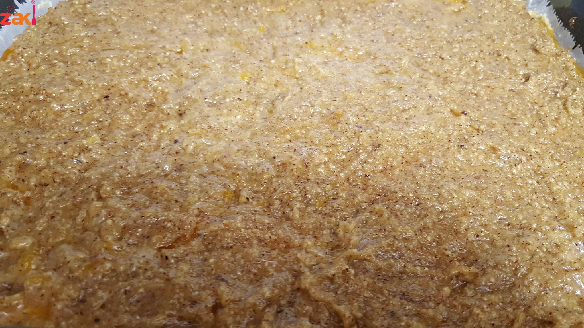 • نضربهم مع بعض حتى يذوب السكر نضيف 400 غرام بندق مطحون أو نصف بندقية ونصف لوز أو أي من المكسرات الثانية حسب الرغبة وبس انمزجوا نمدهم فوق المربى وندخلهم الفرن المحمى مسبقا على 160 ..لمدة 30 الي 35 دقيقة