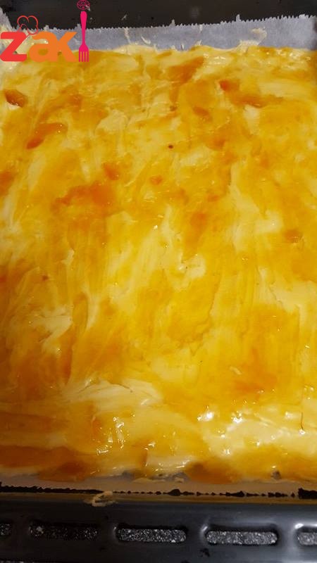 نضع على وجه العجينة 6 معالق مربى المشمش نمدهم