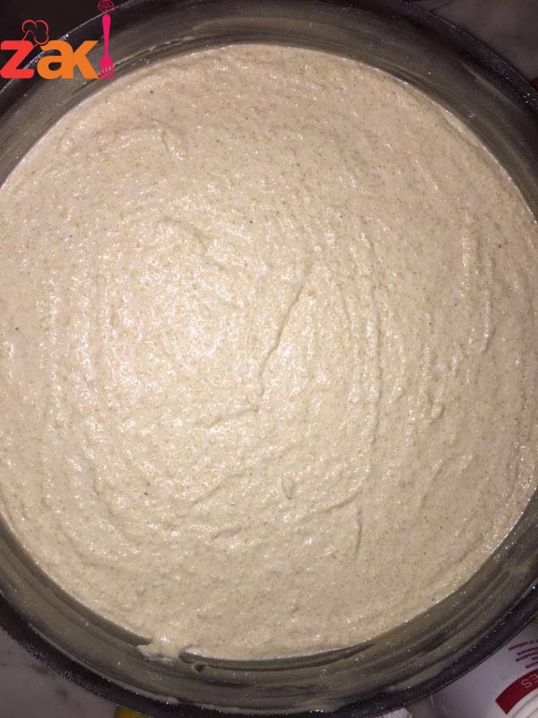 - ثم دهنت صينية طحينة ووضعت المزيج اخد وقت قريب النصف ساعة عندما تروا لونه اصبح يشقر عن الجوانب