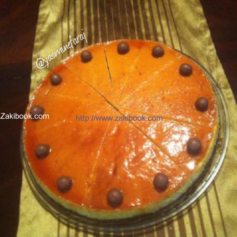 – نضع الخليط فوق خليط الكراميل ابتدائا من نص القالب و بنصير ندورها و نحن نسكب بهدوء.