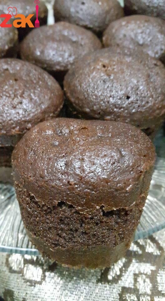 يصب الخليط في كاسات الكرتون بدون ماتدهن بشي. وتوضع الكاسات في الفرن حامي مسبقا ع الرف الوسط 30 دقيقة وتترك لتبرد ثم تمزق الكاسات الكرتون بهدوء. وتزين حسب الرغبة.