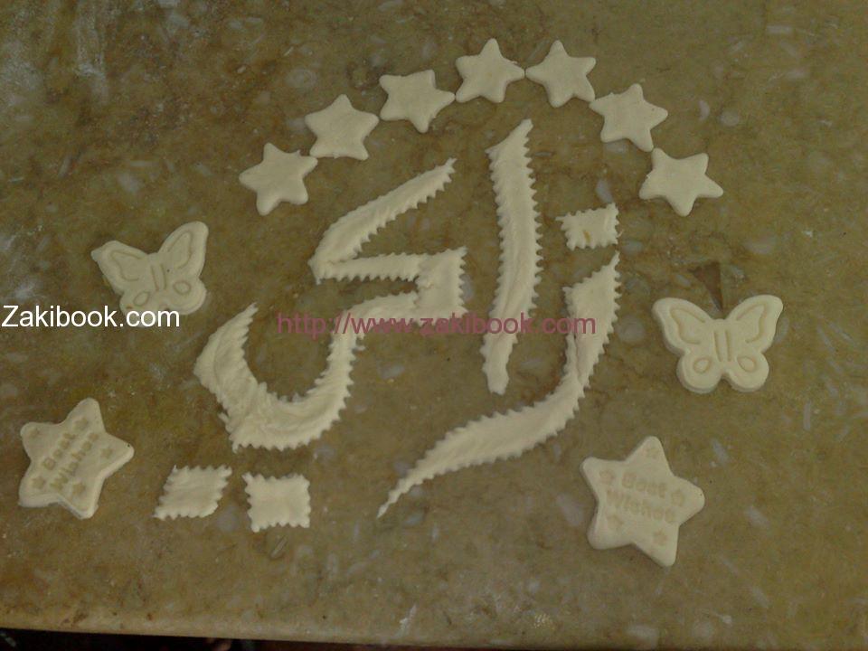 – و بعد ما العجينة تجهز نغطيها 10 دقايق بعدين نقطعها قطع ونحشيها عجوة او ملبن, تعرف على طريقة الملبن من هنا, ونفردها ونقطع العجوة اشكال بقطاعات لو امكن او صوابع قبل التسوية ولو ملبن نقطعه بعد التسوية.