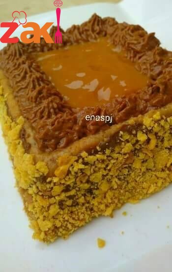 .خليط من بسكوت مطحون مع نوتيلا حطيهم في كيس الكريما وزيني بيهم وفي الوسط حطيت كراميل