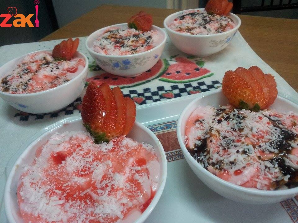 وعالوجه بتزيني بصوص فراولة أو كراميل وحب الفراولة .