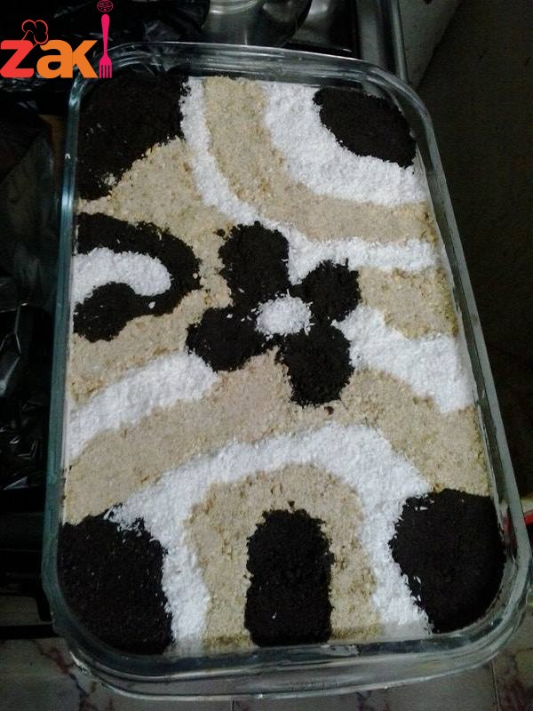 ومن ثم طيقة بسكوت وثم كريمة حتى ننهي الكمية او حسب البايركس وبعد ذالك التزين التزين بسكوت اوريو منزوع الكريمة