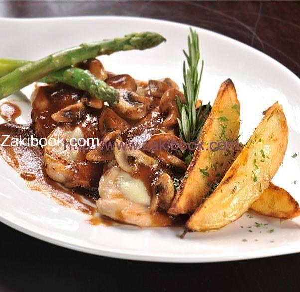 موزاريلا حسب الرغبة و نضع فوقها صلصلة الفطر و يسلق الهيلون على البخار و يقلب بقليل من الزبدة و نحضر معاها بطاطا ويدجز بعد تتبيلها وصحة وهنا.