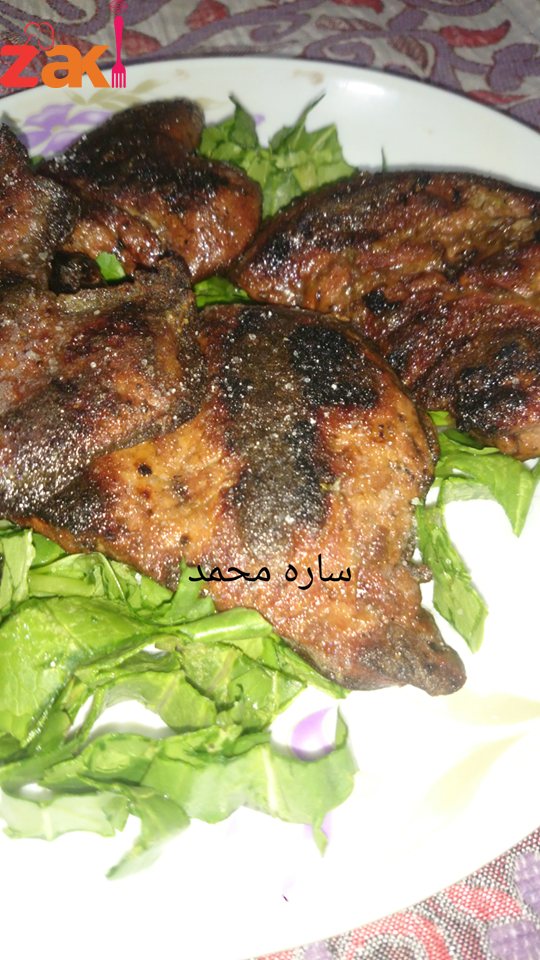 ونحط فيها الكبدة ونهدئ النار حتي تنضج دون استعمال كمية كبيرة من الزيت وصحتين وعافيه يارب
