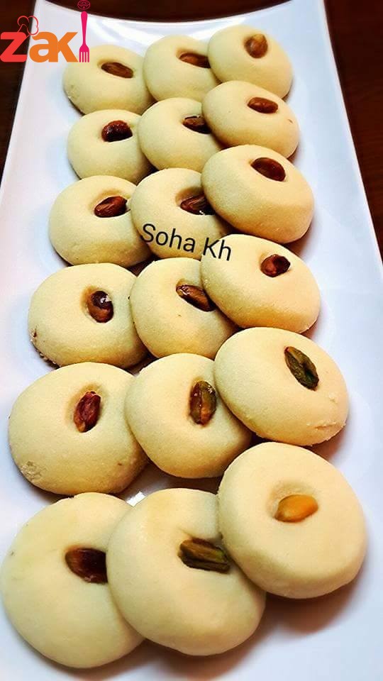 - تشكل وتوضع بصنيه الخبيز وتزين بالفستق الحلبي