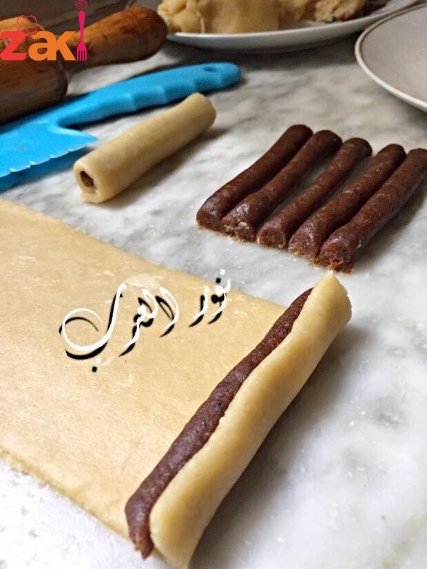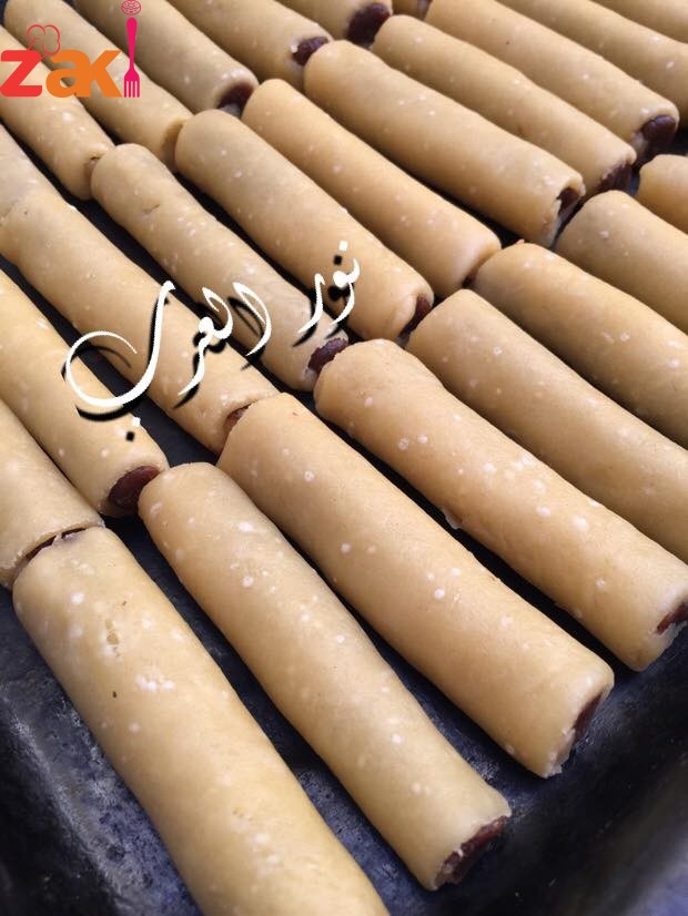 ونفردها زي مابالصورة كل ماكانت رقيقة احلى ، ونحشيها تمر معصد بالزهر والقرفة ونطيبوها في فرن ساخن