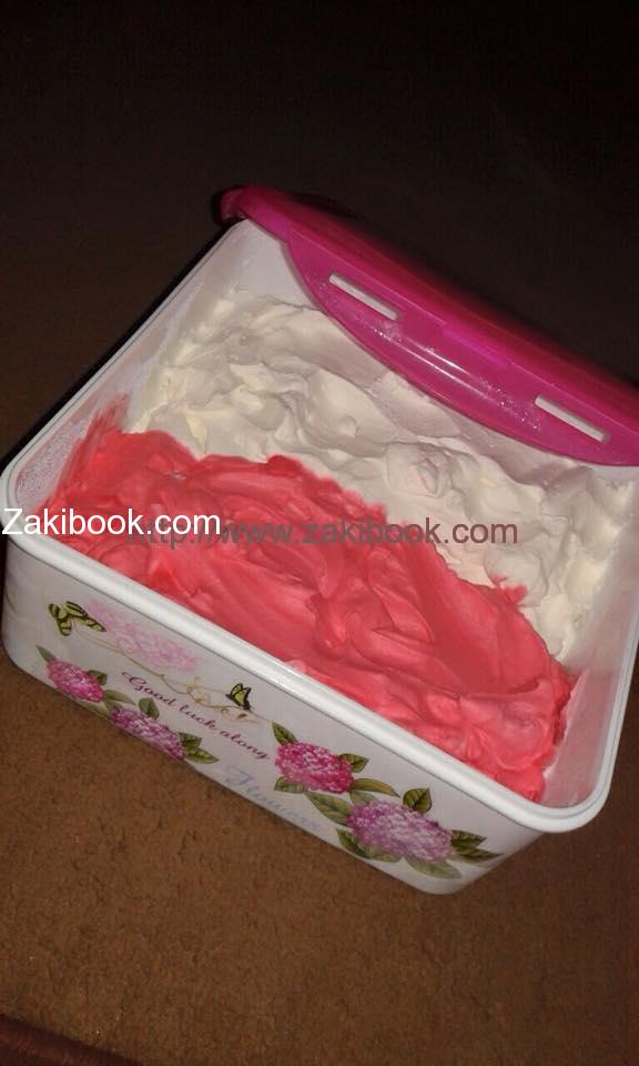 – للحصول على ألوان مختلفة, نضيف القليل من الصبغة قبل وضع الايس كريم في الفريزر.